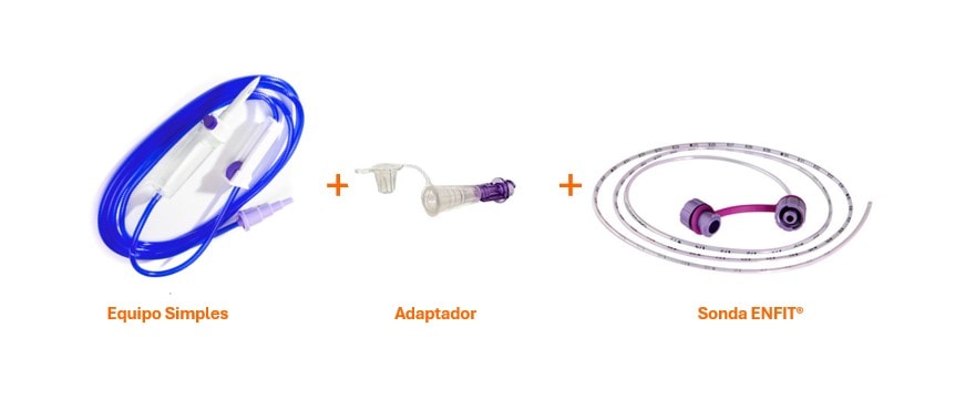 Então neste caso é necessário o uso do adaptador para administrar a dieta enteral.
