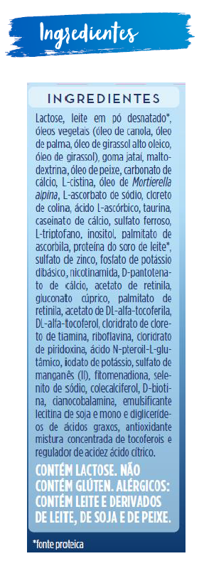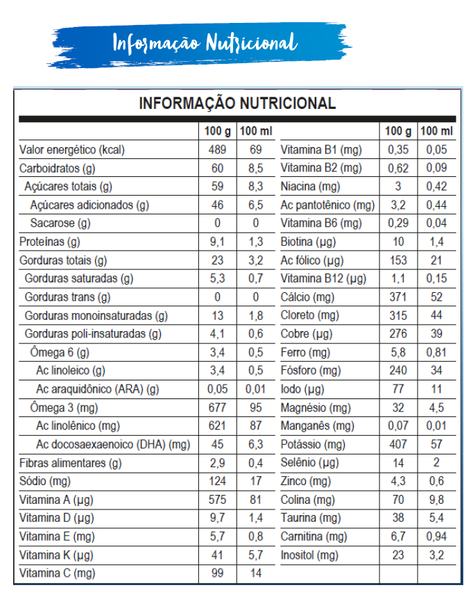 Importante: o uso deste produto em crianças menores de 1 (um) ano deve ser indicado por orientação de um médico e/ou nutricionista. O aleitamento materno é essencial para a saúde do bebê, evitando infecções e alergias, além de fortalecer o vínculo entre mãe e filho.