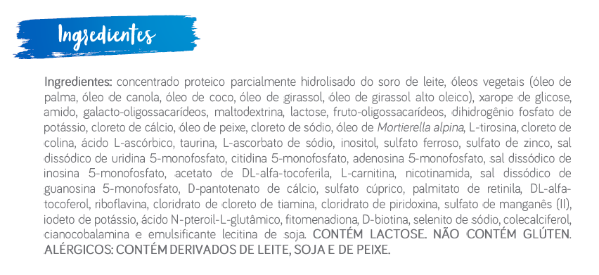 - Contém proteínas lácteas parcialmente hidrolisadas;