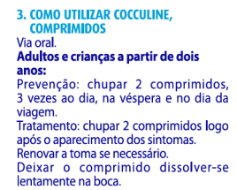 - Prevenção: chupar dois comprimidos três vezes ao dia na véspera e no dia da viagem