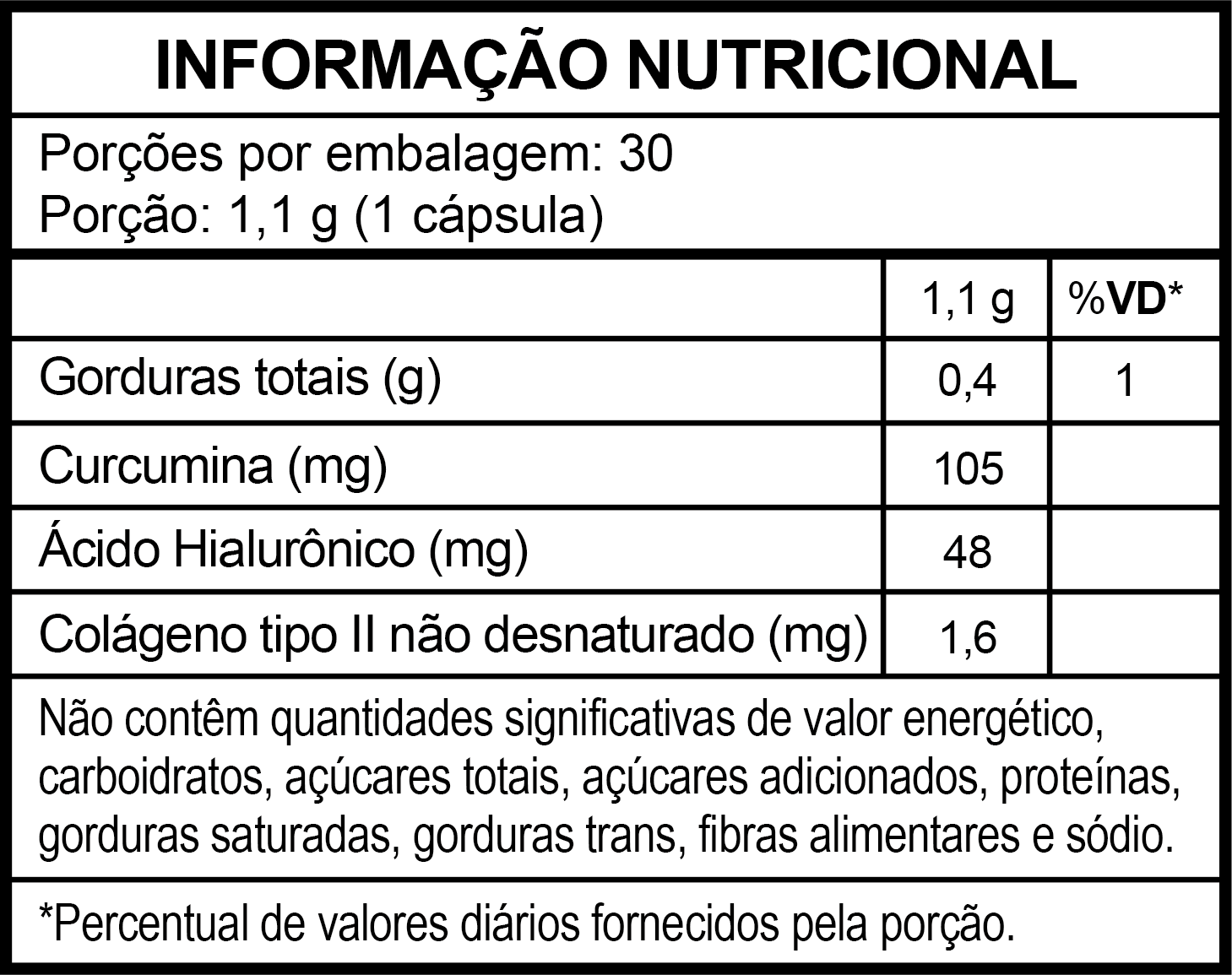 - Fórmula com Colágeno tipo II, Ácido Hialurônico e Cúrcuma