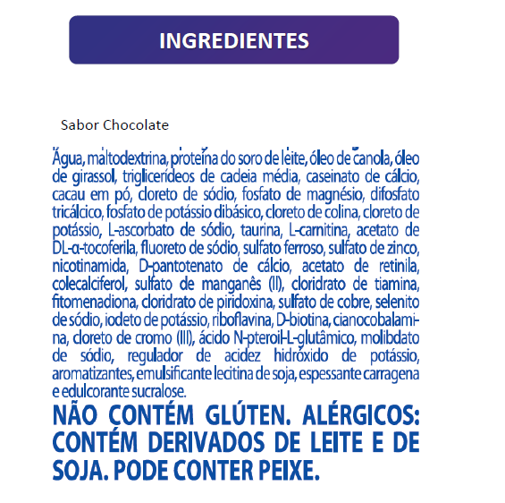 Descrição: Fórmula padrão para nutrição enteral ou oral, com densidade energética alta (1,5kcal/ml), adequado teor proteico e um exclusivo mix lipídico.