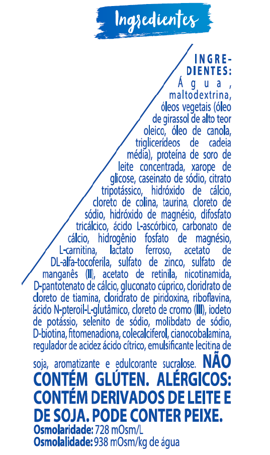 Indicação: para nutrição enteral ou oral em situações metabólicas especiais, pacientes com função renal comprometida em diálise que requerem uma dieta com alto teor de proteínas e alta densidade calórica.