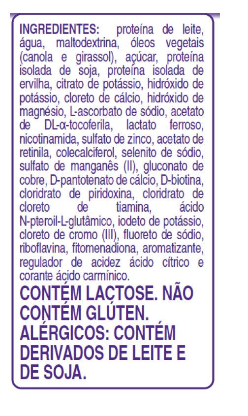 Descrição: Fórmula modificada para nutrição enteral ou oral, com densidade energética alta e hiperproteico, com aporte de proteínas de alto valor biológico. Rico em vitaminas e minerais e com excelente perfil lipídico.