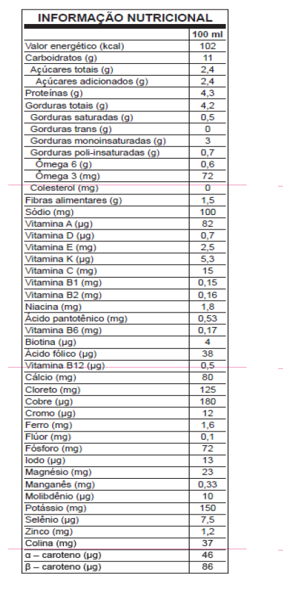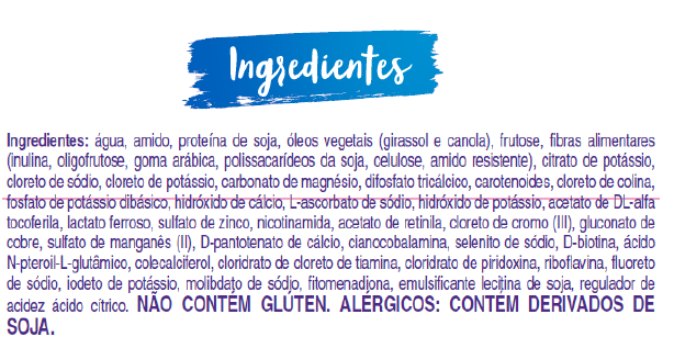 Descrição: Fórmula modificada para nutrição enteral, especialmente formulado para diabetes e situações de hiperglicemia. Nutricionalmente completo e normocalórico, composto por 100% de proteína isolada de soja e carboidratos de baixo índice glicêmico. Enriquecido com exclusivo MF6 (80% fibras solúveis e 20% fibras insolúveis). Acrescida de exclusivo mix de carotenoides.