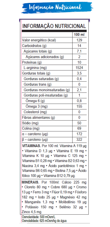 Indicação: suplemento alimentar para auxiliar no processo de cicatrização de lesões por pressão, recuperação tecidual, cicatrização pós cirúrgica e feridas como pé de diabético, erisipela bolhosa e queimaduras da pele.