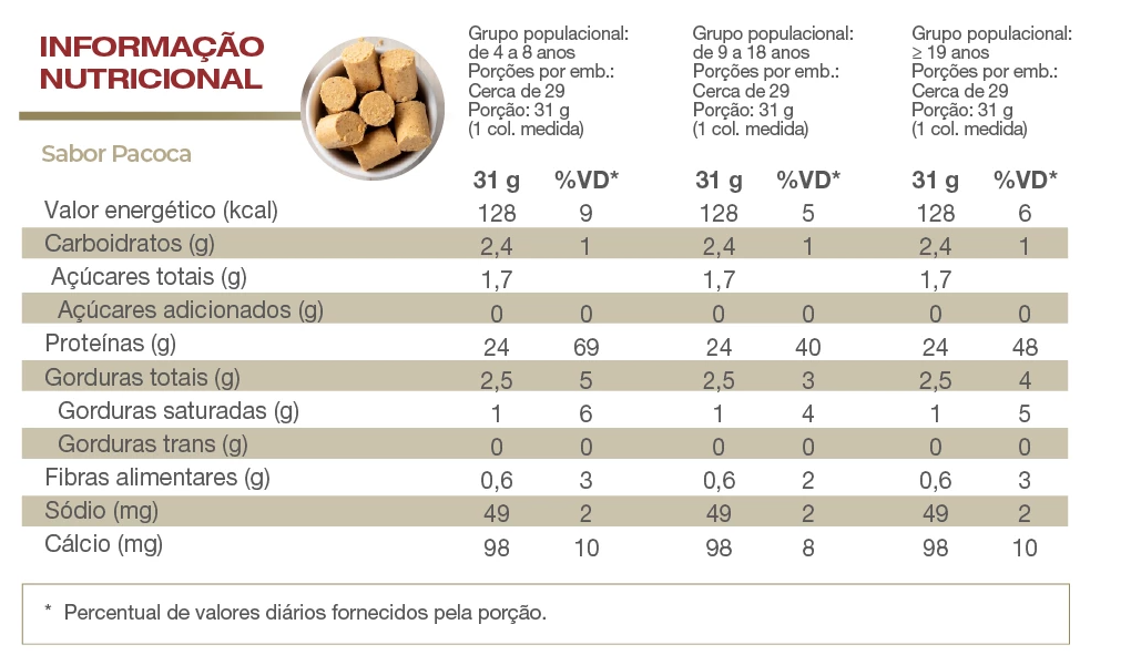 24g de proteína por porção nas apresentações de sabores e 25g de proteína na apresentação sabor neutro.